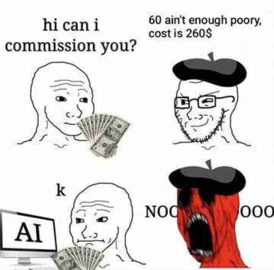 Yeah, SHITE Artists can get replaced with AI. I am sick and tired of "ARTISTS ARE LOSING JOBS, GUIZE!!!!". I am sick and tired of the worthless virtue signaling.