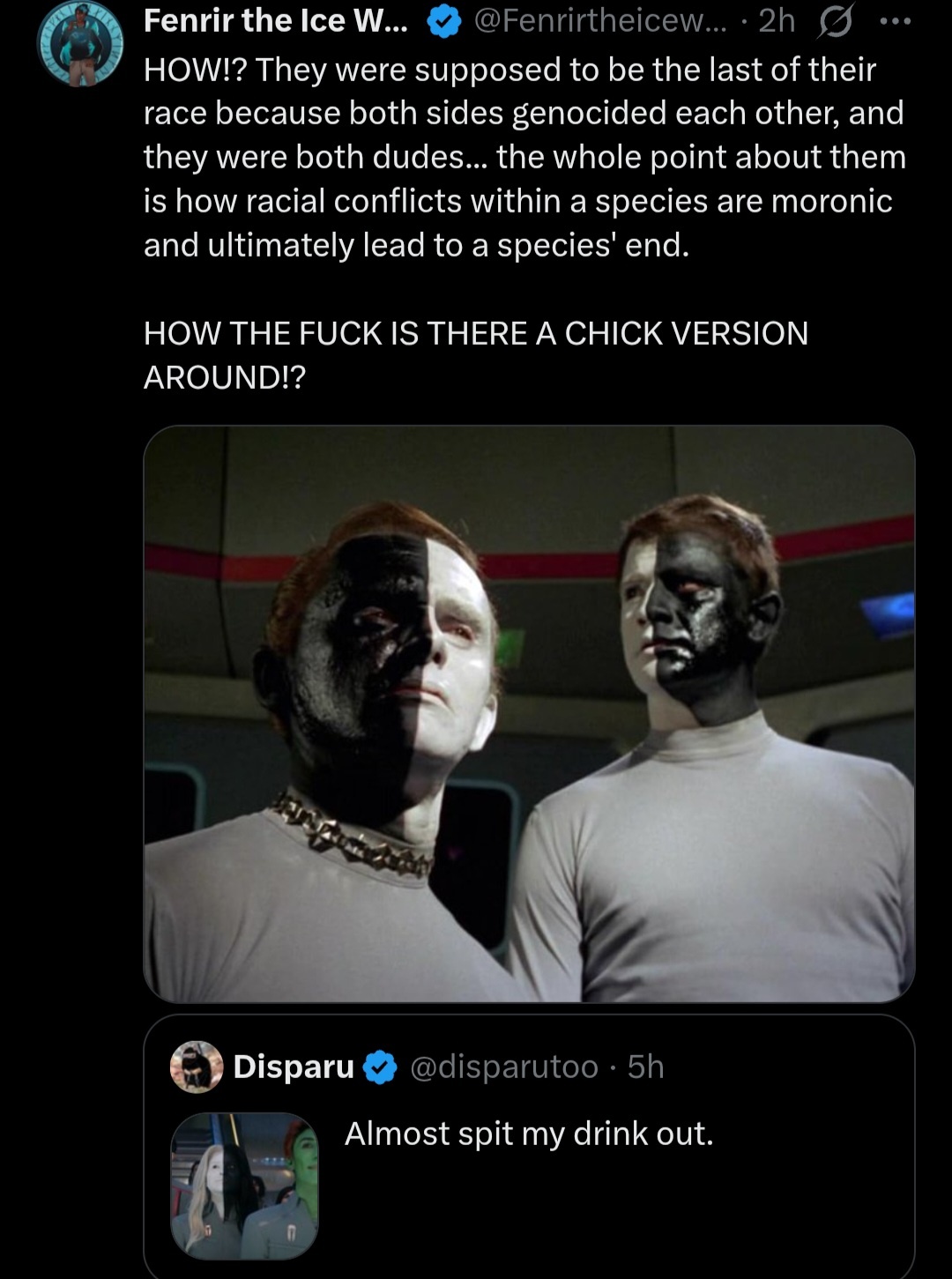I remember this episode from the original series, so I guess they're retconing their species so the males give birth or so faggy shit like that. 🙄