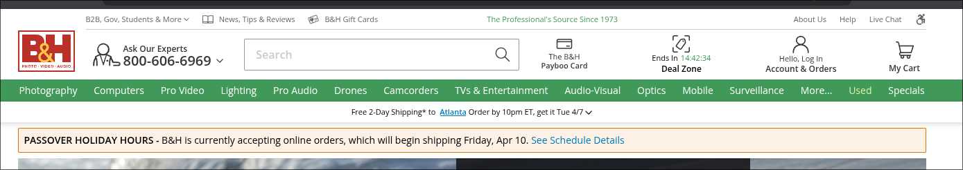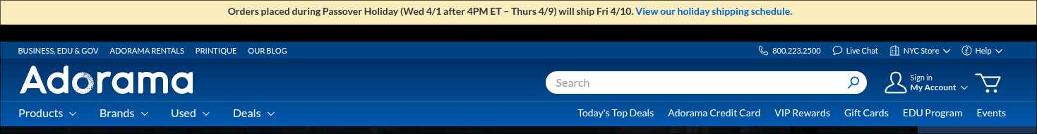 Adorama: closes for Passover, and holidays...